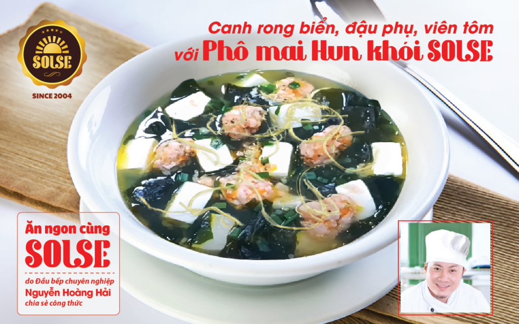 Canh rong biển, đậu phụ, viên tôm, với Phô mai Hun khói SOLSE – Món ngon thanh mát cho ngày hè