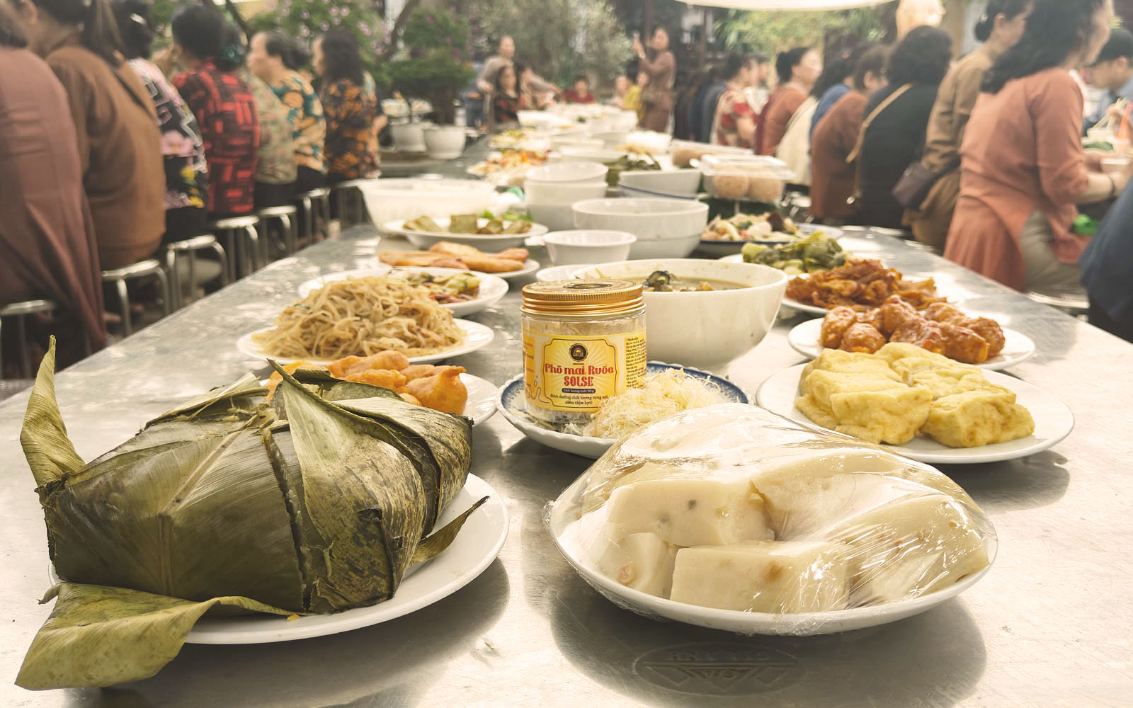 Tại khu vực chuẩn bị cỗ, Phô mai Ruốc SOLSE được sử dụng như một món ăn kèm trong các phần cỗ chay dâng lễ và chia sẻ tới Phật tử. Với đặc tính tiện lợi, dễ sử dụng và vị đậm đà, sản phẩm có thể kết hợp cùng xôi hoặc các món ăn thanh đạm, góp phần làm phong phú thêm trải nghiệm ẩm thực trong không gian chùa.